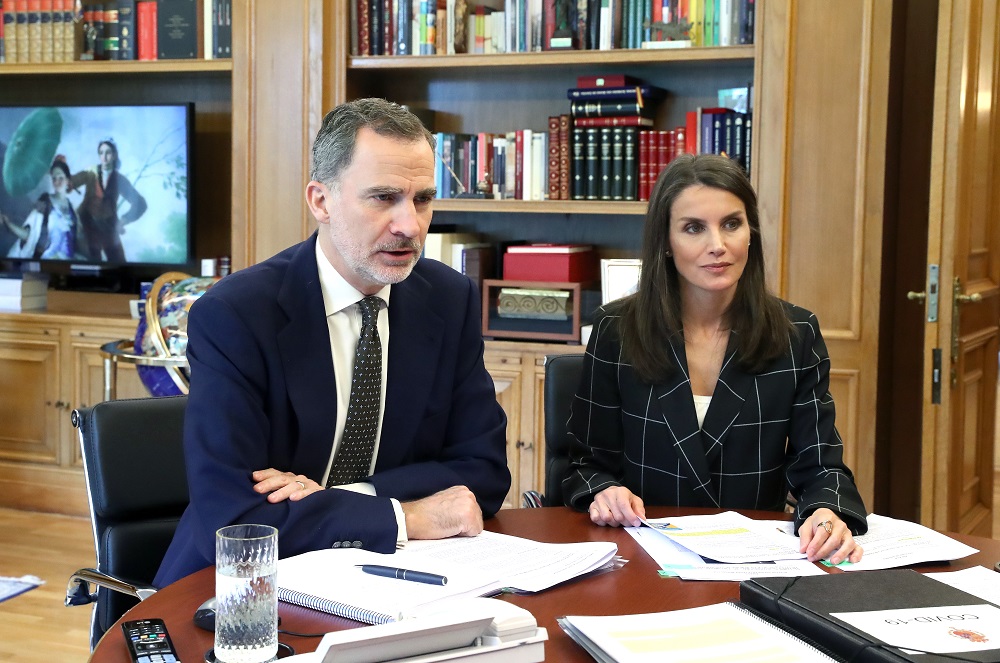 • Los Reyes en un momento de la videoconferencia con el presidente del Consejo General de Enfermería @Casa Real