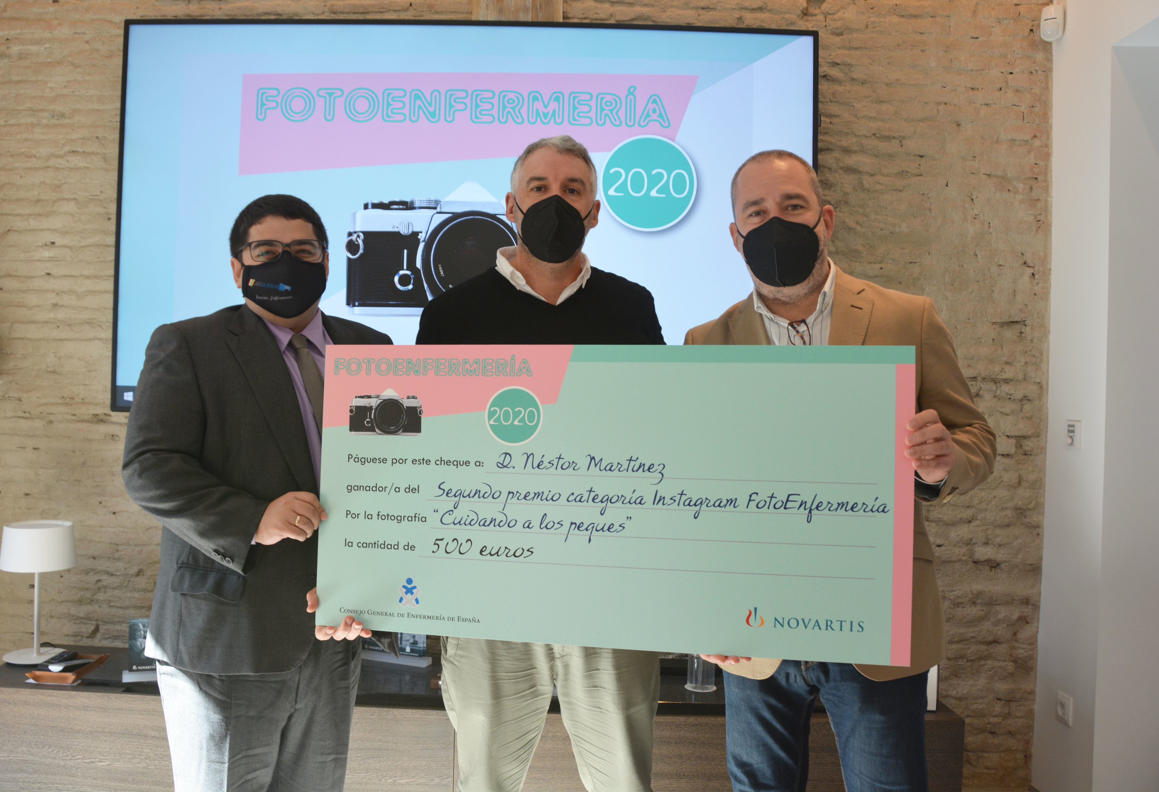 • Segundo premio de FotoEnfermería 2020, categoría Instagram. Néstor Martínez recibe el premio de David Led, secretario del Colegio de Enfermería de La Rioja